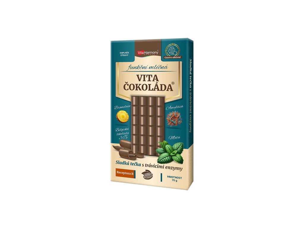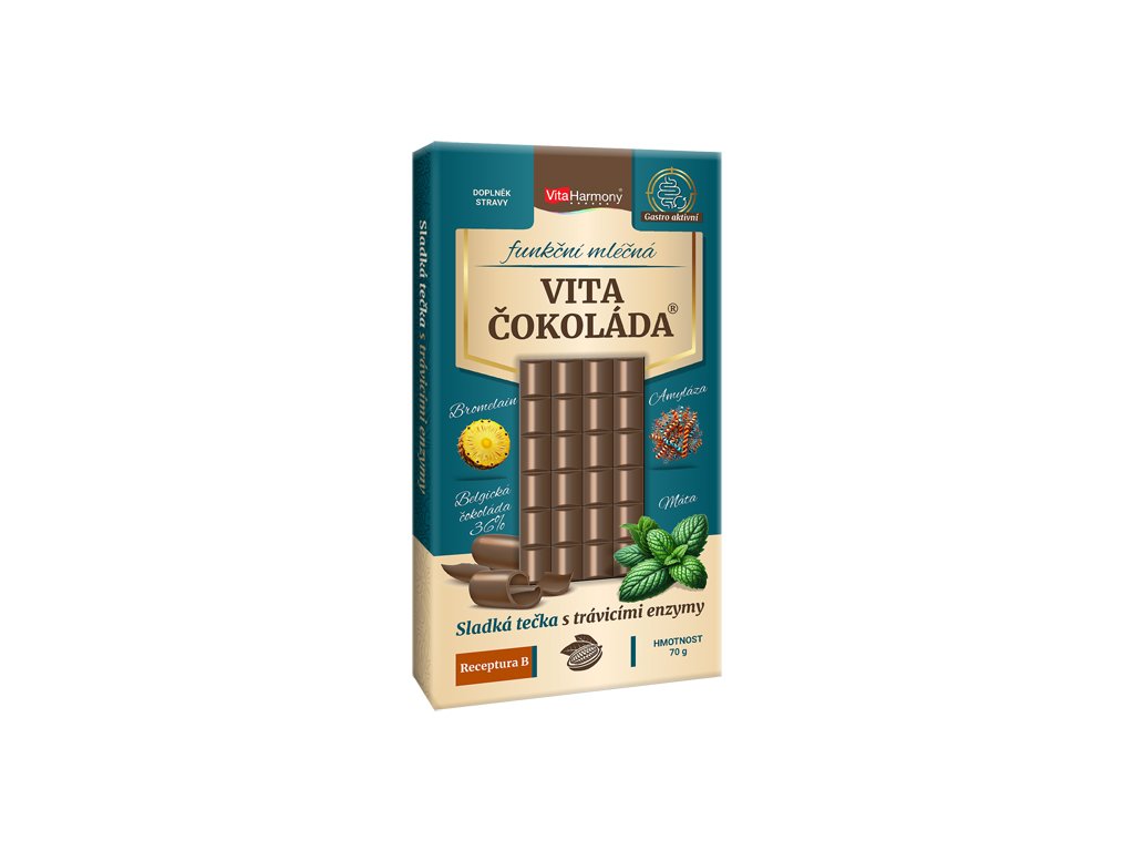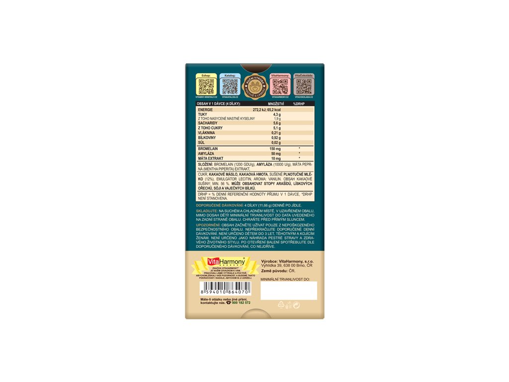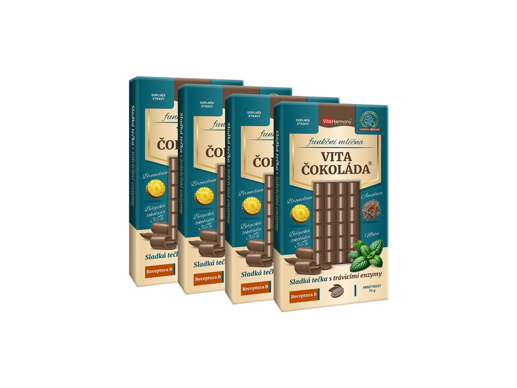 4 ks za cenu 3 ks- Funkční VitaČokoláda® - Receptura B - (bromelain, amyláza, máta) - mléčná, 70g