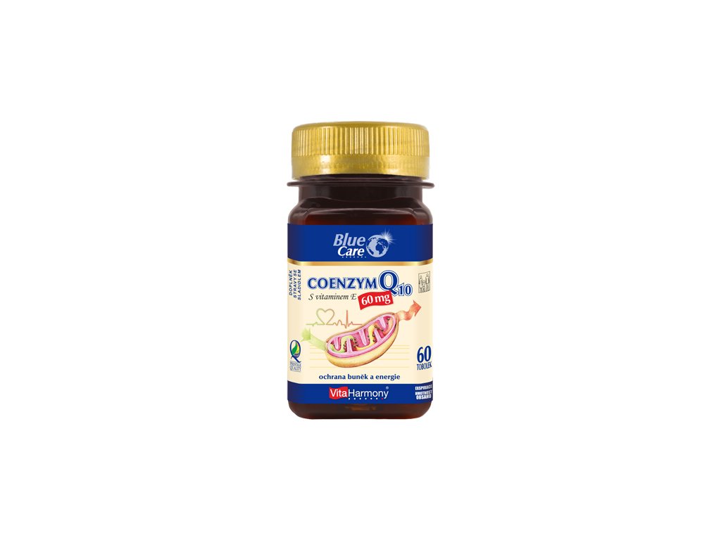 Coenzym Q10 60 mg s vitaminem E je inovovaný přípravek s obsahem dvojnásobného množství aktivní látky. Coenzym Q10 neboli ubichinon je látka přirozeně obsažená v buňkách lidského těla. Nejvyšší množství obsahují zejména buňky aktivní a zatěžované (například buňky srdečního svalu, mozku nebo játer), kde se účastní procesu tvorby energie.