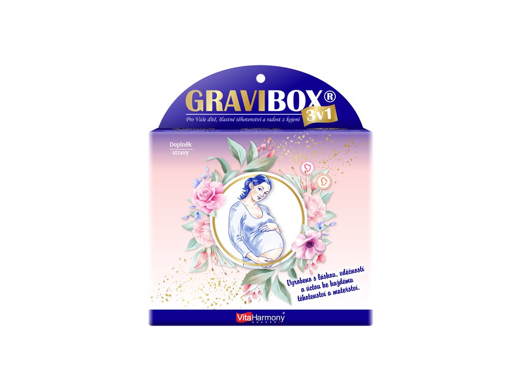 GraviBox je vašim spolehlivým průvodcem během těhotenství. Obsažené produkty zajišťují optimální dávky vitaminů a minerálů, které jsou důležité pro podporu správné tvorby nových buněk, vývoj nervového systému dítěte a prevenci možných vad u novorozenců. GraviBox zajišťuje i důležité dávky omega 3 mastných kyselin, zejména DHA. Ty jsou prospěšné pro vývoj mozku a zraku vašeho dítěte. Mají také pozitivní vliv na zdraví srdce a mozku těhotné ženy. Přípravek je taky doplněn o unikátní lízátka proti nevolnosti v těhotenství ( 4ks).